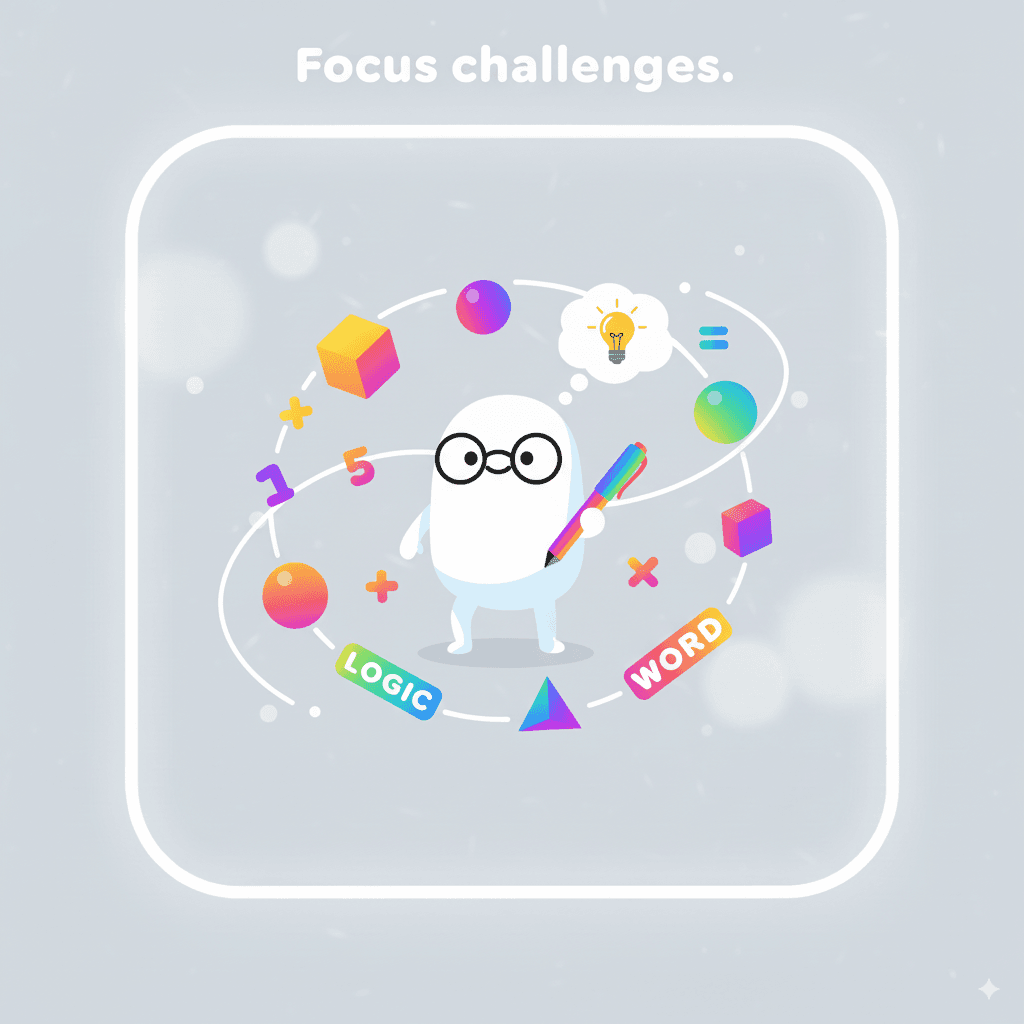 Solve math, patterns, and vocab to boost focus.